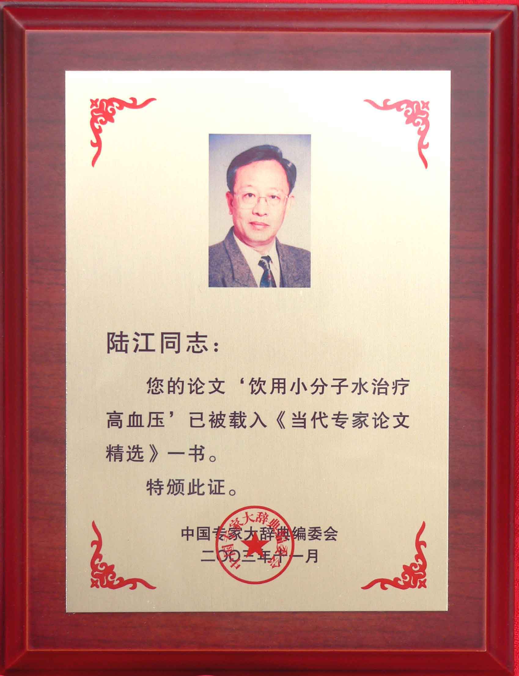 《飲用小分子水治療高血脂》獲優秀論文獎